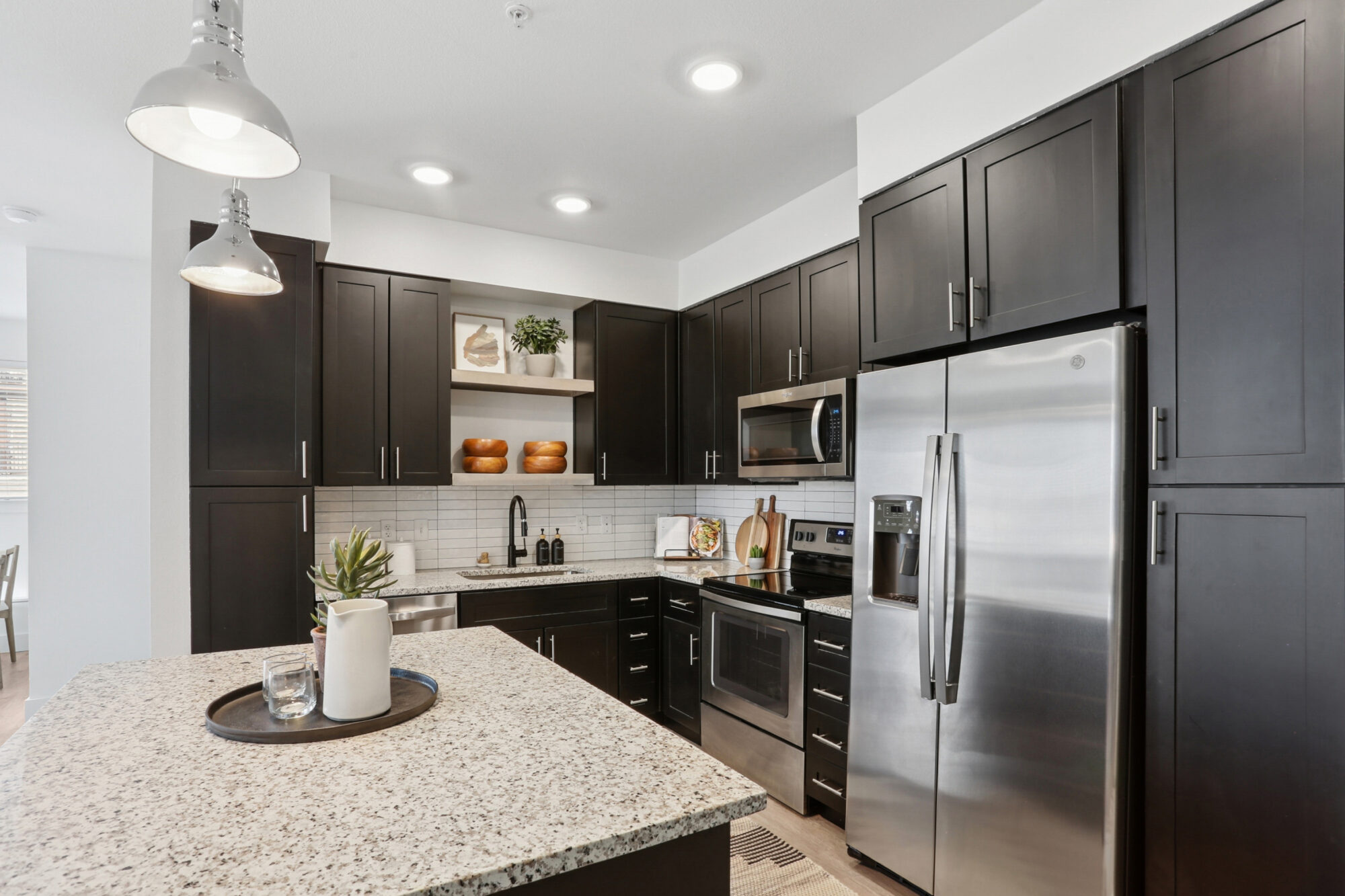 At Bell Parker Ranch apartments in Parker, Colorado, your home reflects how you want to live. Comfortable. Connected. Stylish. Choose from studio, one-, two-, or three-bedroom floor plans with modern finishes, full-size washer and dryer, and panoramic mountain views. Select apartments feature private patios, spacious closets with built-in shelving, and kitchen islands.